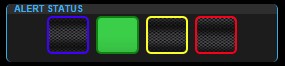 This panel in the upper right of the Communications Console Station screen both shows the CURRENT ship alert status, but also SETS the ship alert status. Only the Communications officer and the Captain have access to this function.