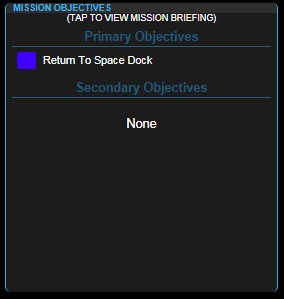 This panel, in the lower right side of the Communications Console Station Screen, shows the current mission objective(s). In some instances it will also show the completion progress (2/3 ‘two-of-three’ complete).